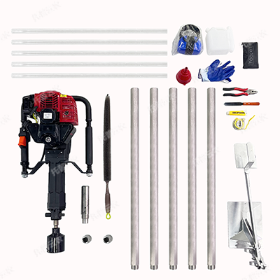 汽油動力發(fā)動機一臺,發(fā)動機工具包一套,標準土壤鉆頭1個、硬質(zhì)土鉆頭1個任選,1米的鉆桿5根(根據(jù)需要另加)、不小于1米的塑料樣品管2根,刮刀、膠錘、老虎鉗、耳機、5M卷尺、手套、清潔刷各1個,專用提取設備1套、工業(yè)塑料運輸箱1個